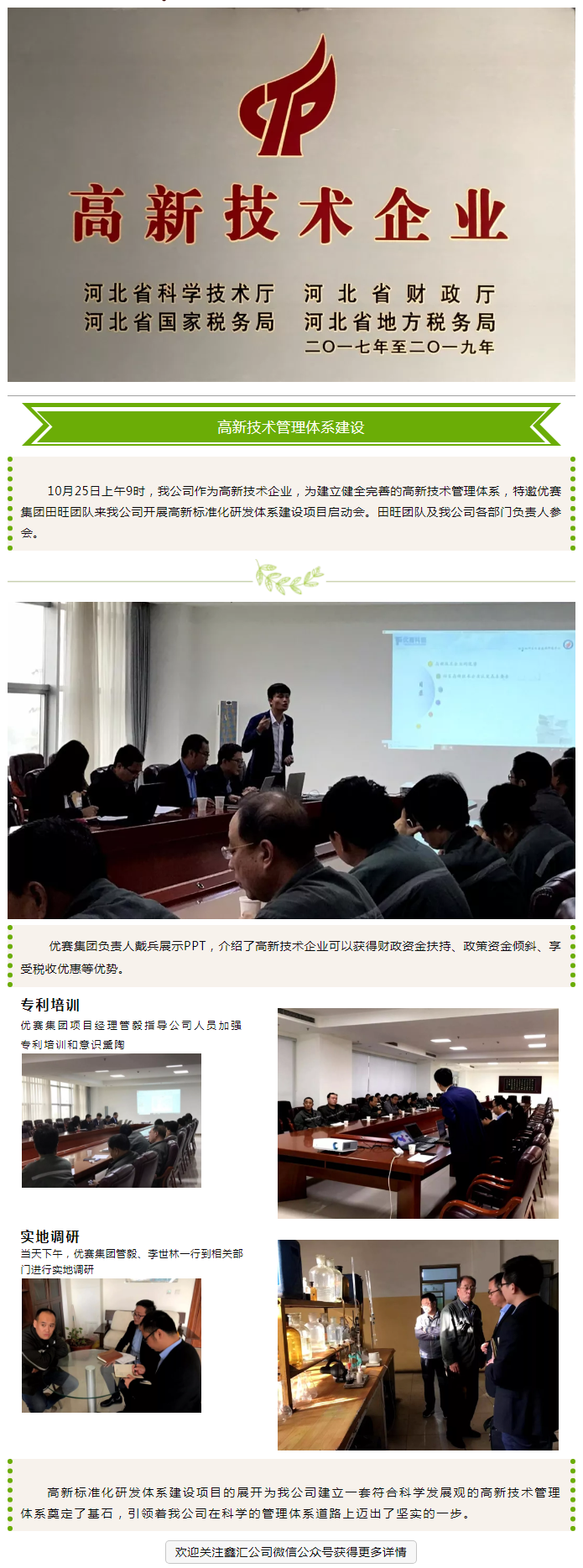 河北鑫匯:高新技術企業(yè)標準化建設與管理項目啟動